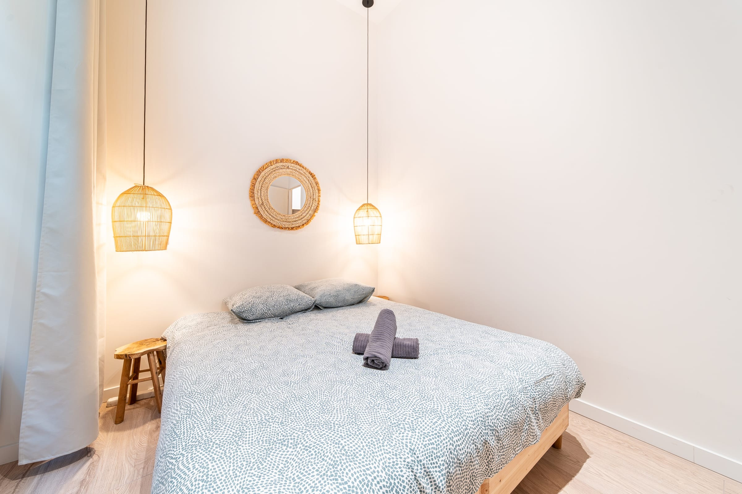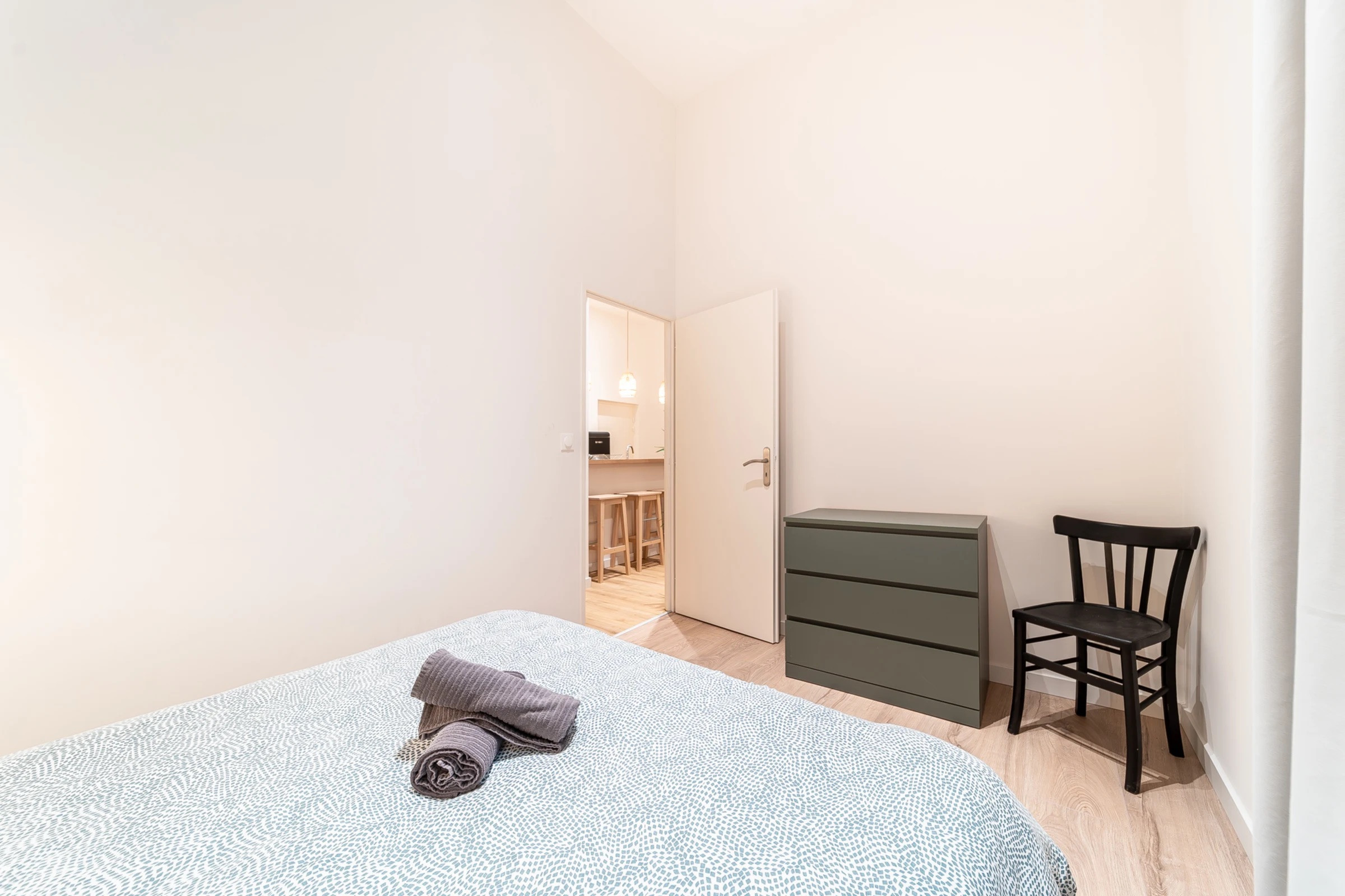 - 2 rooms with double bed (160x190 cm), chest of drawers and chair