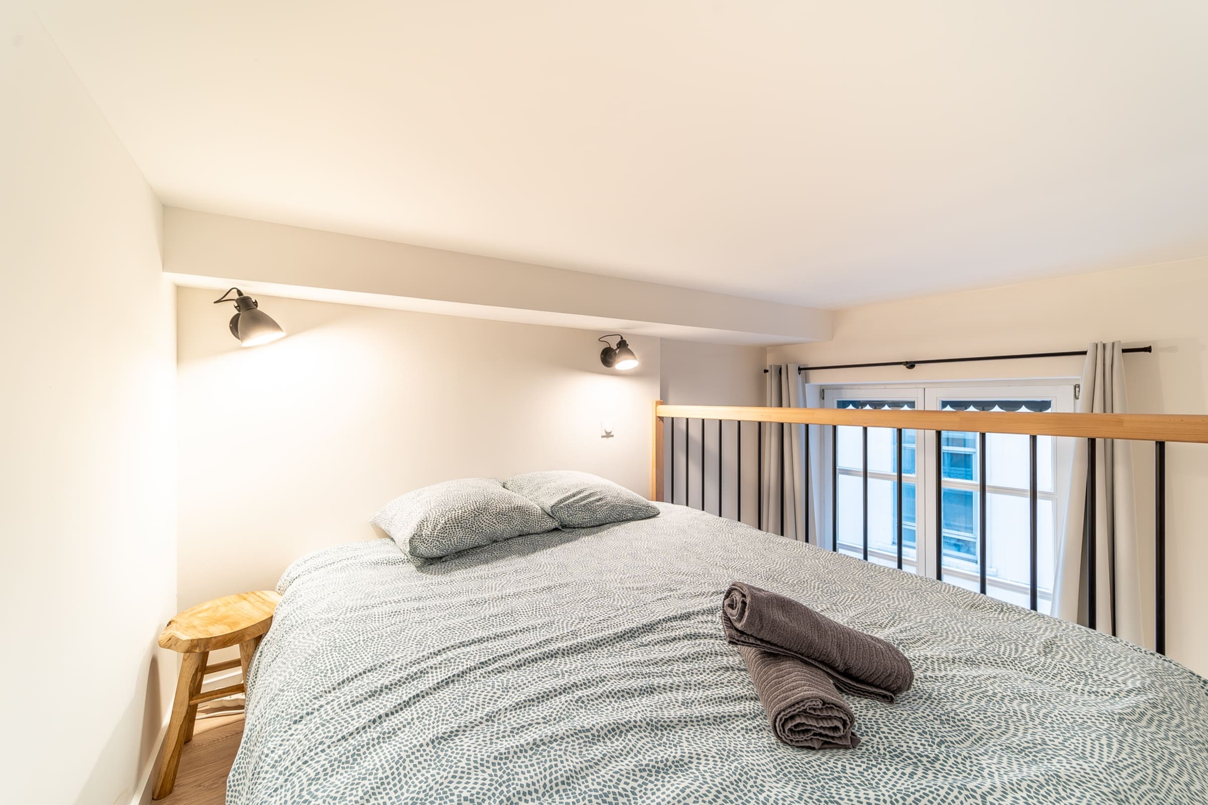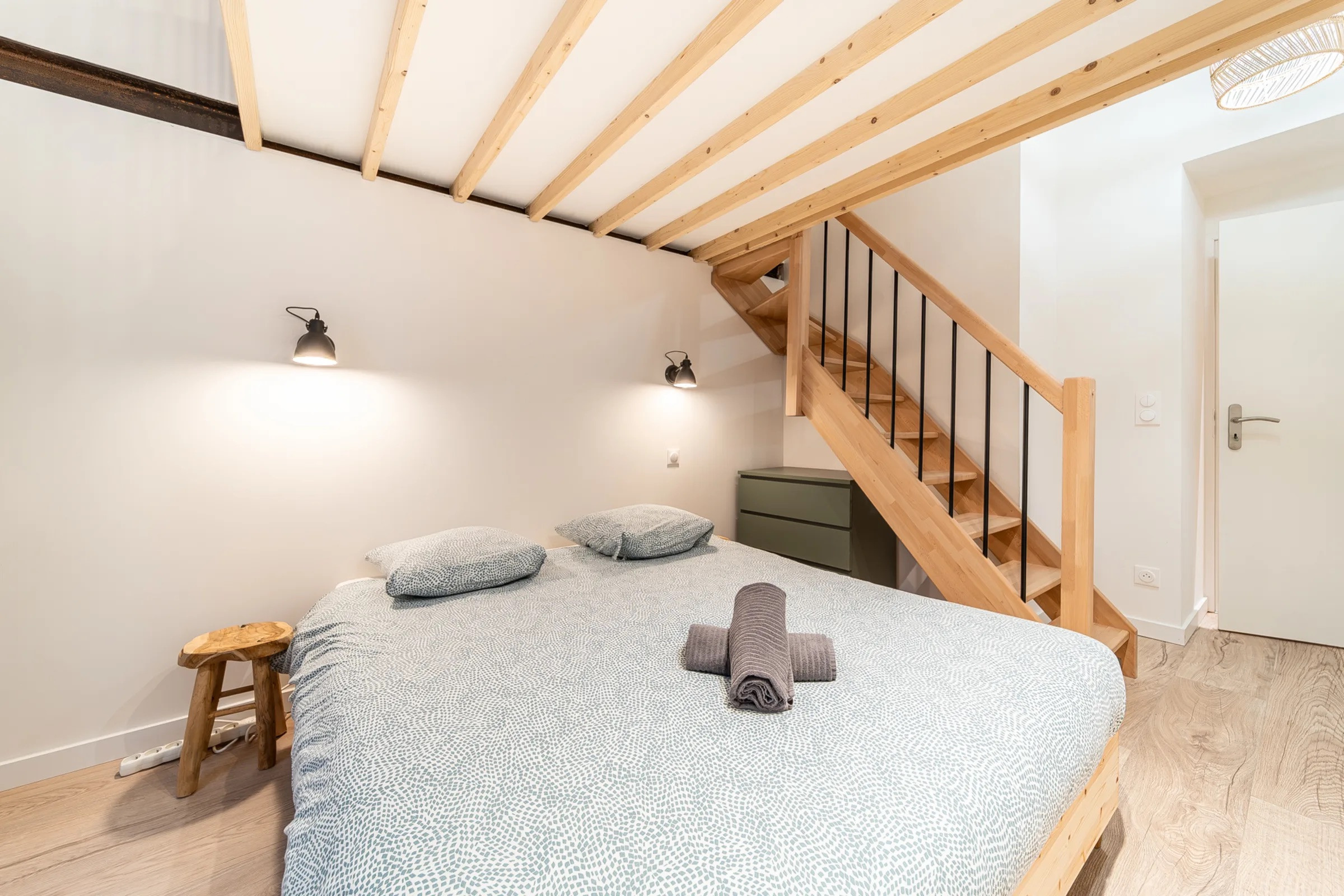 - 1 grande chambre familiale pour 4 personnes avec lit double + mezzanine (lit 160x190 cm)
